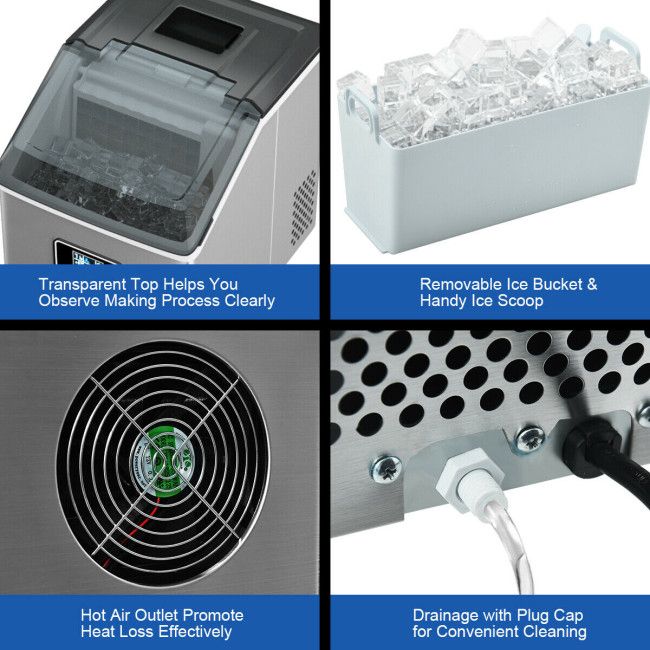 48 Lbs Stainless Self-Clean Ice Maker with LCD Display