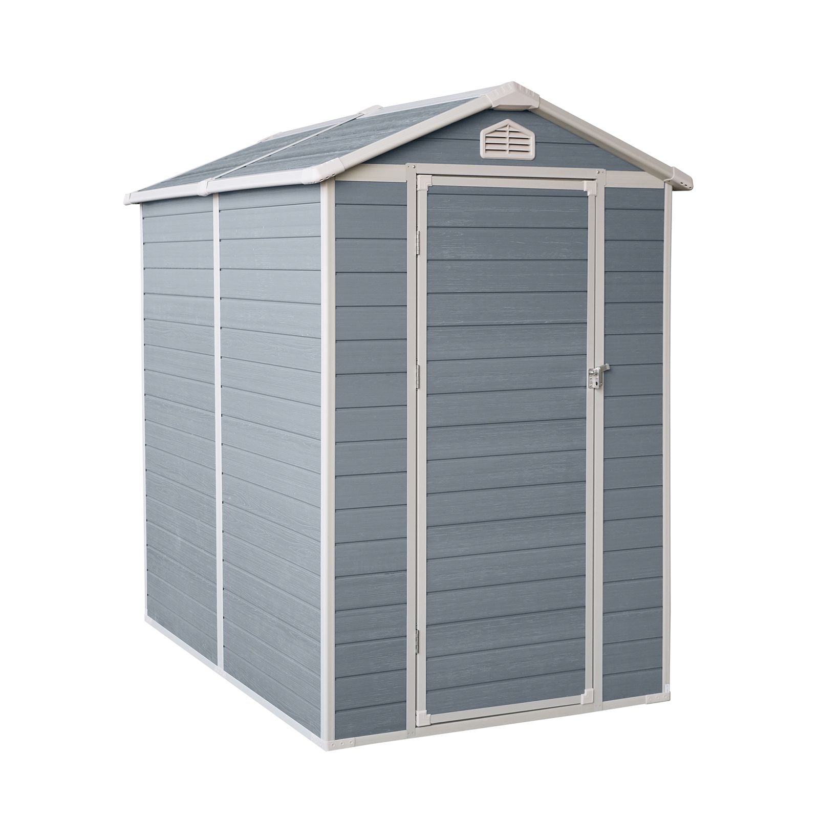 4x6ft Resin Outdoor Storage Shed with Floor and Lockable Doors for Patio,Yard,Lawn ,Grey
