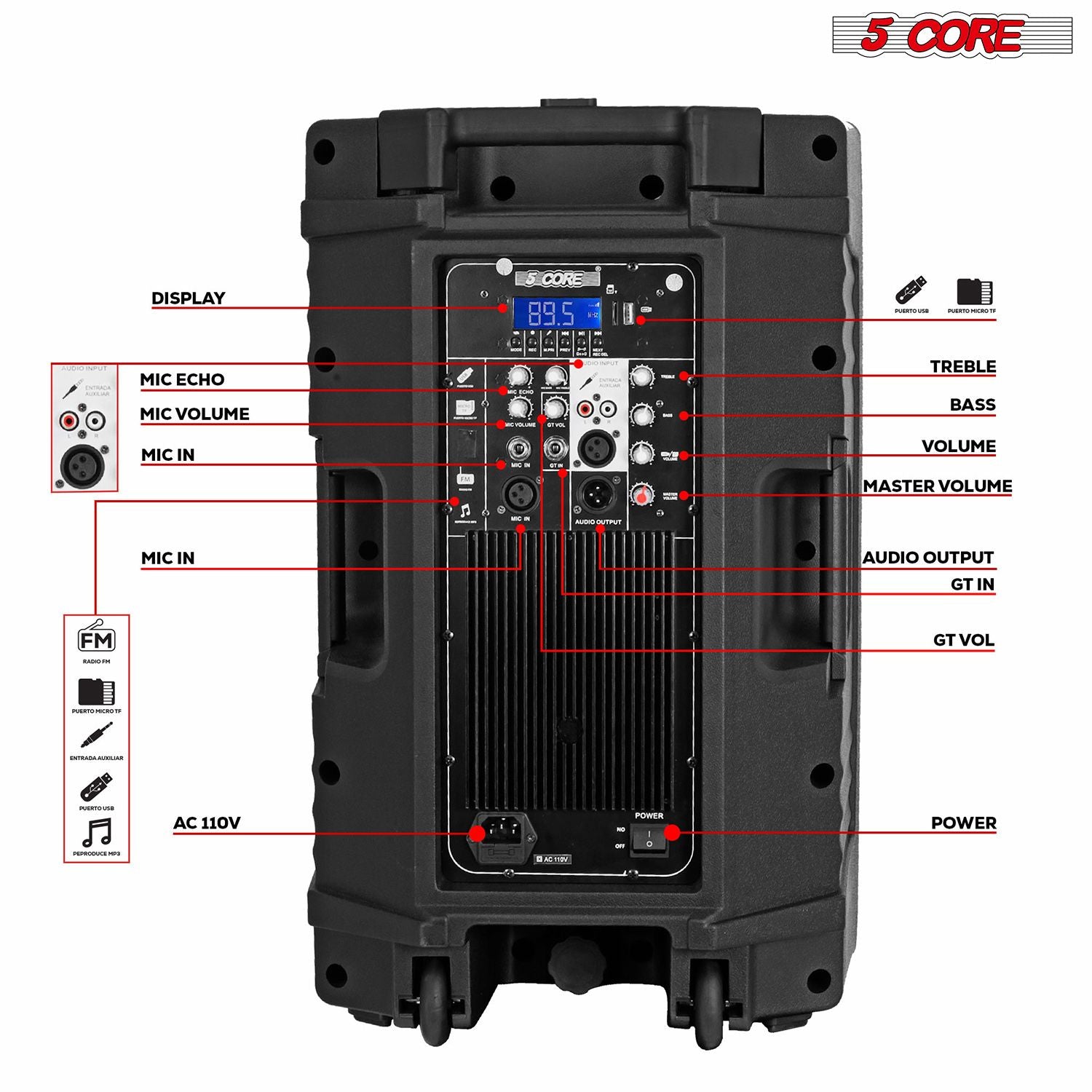 Immerse yourself in the ultimate audio experience with a 5 Core powerful 150-watt big Bluetooth karaoke machine! Feel the deep bass and crystal-clear highs from the 12" subwoofer and super 1.35" bullet tweeter. Stream your favorite music effortlessly from your smartphone, tablet, or other Bluetooth device, and use it indoors or outdoors for epic parties or professional gigs. A perfect kareokee machine with bluetooth and wireless microphone for adults. With six versatile inputs, including USB, SD card, mic/guitar, and FM radio, the options to play music in this active DJ party speaker are endless. Take full control of your sound with the easy-to-use EQ configuration, adjusting volume and tone to perfection. With its rugged design, retractable handle, and convenient wheels, this portable karaoke machine is built to go wherever the party takes you. |