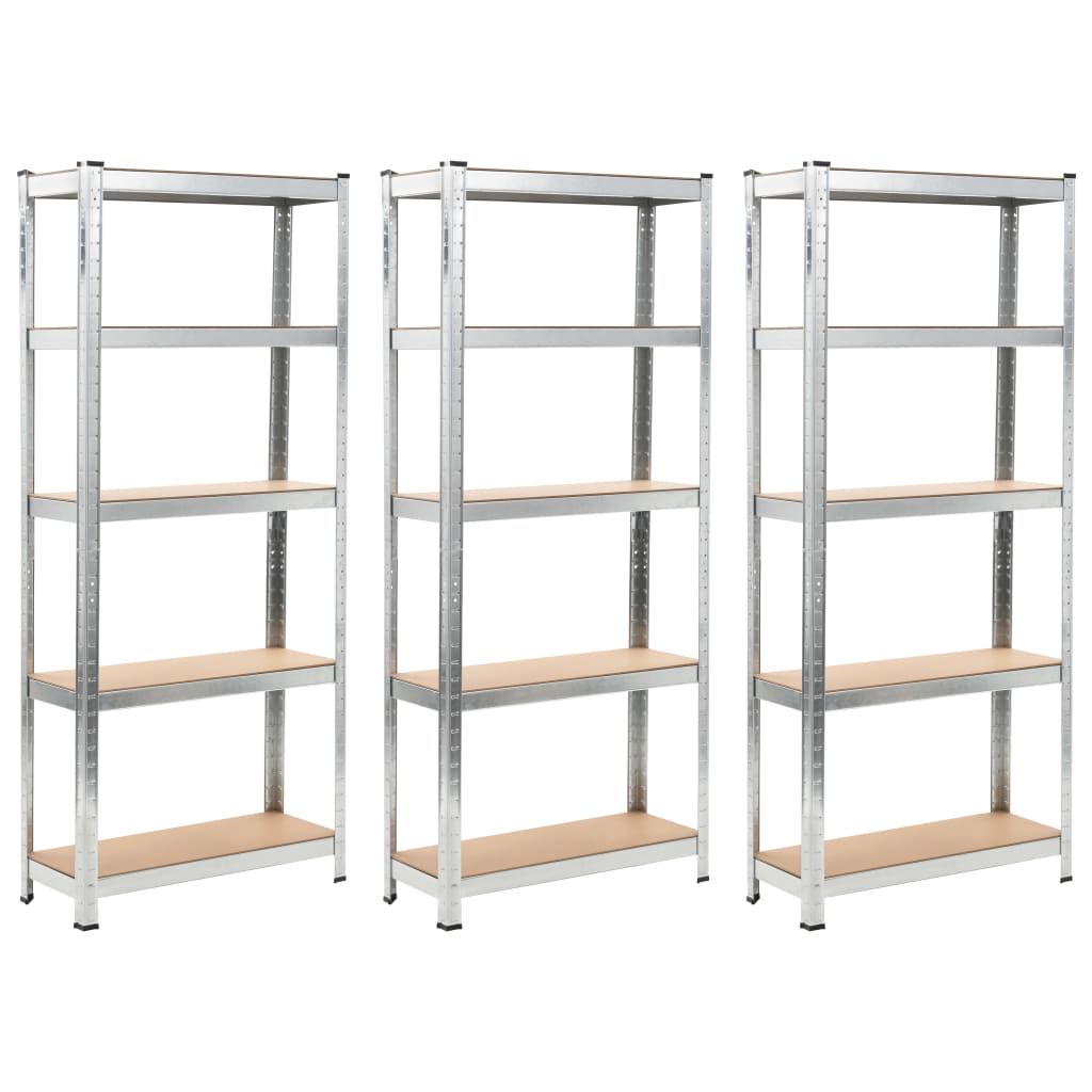 5-Layer Shelves 3 pcs Silver Steel&Engineered Wood
