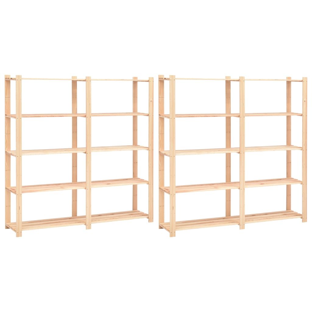 5-Tier Storage Racks 2 pcs 66.9"x15"x66.9" Solid Pinewood 1102.3 lb