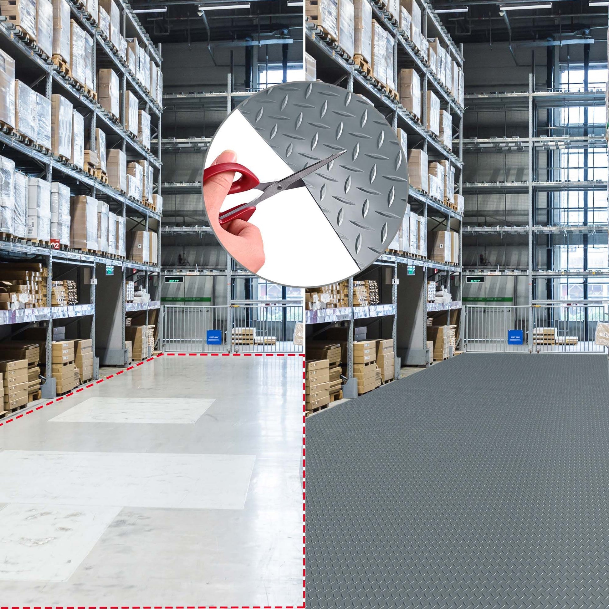 - Anti-slip Floor Mat Roll - 234"x78" Floor Mat Roll features diamond tread pattern for better traction & superb slip resistance, covers concrete or wood sub-floors to prevent deterioration and hide cracks, ideal for residential garage, parking lot, warehouse, food factory, hospital, stadium, hallway
