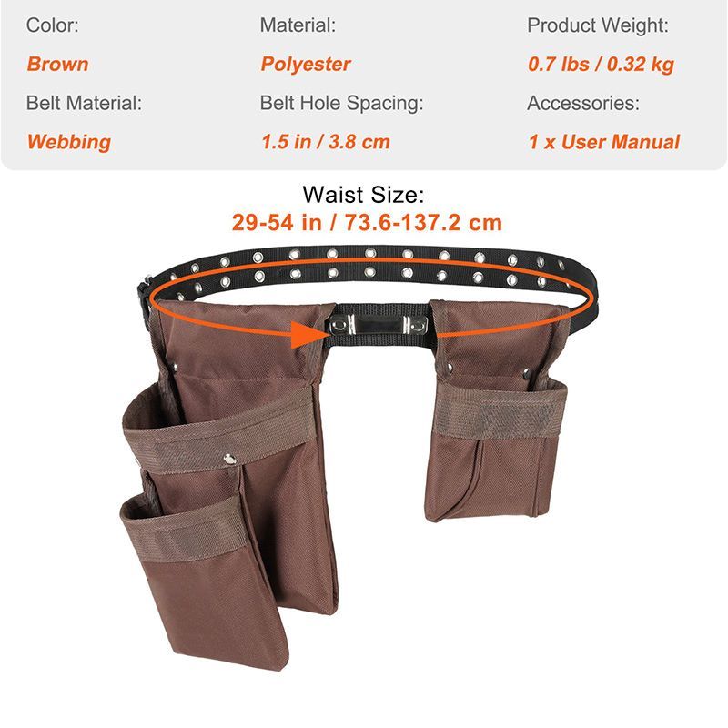 Adjusts from 29 Inches to 54 Inches 13 Pockets Tool Belt