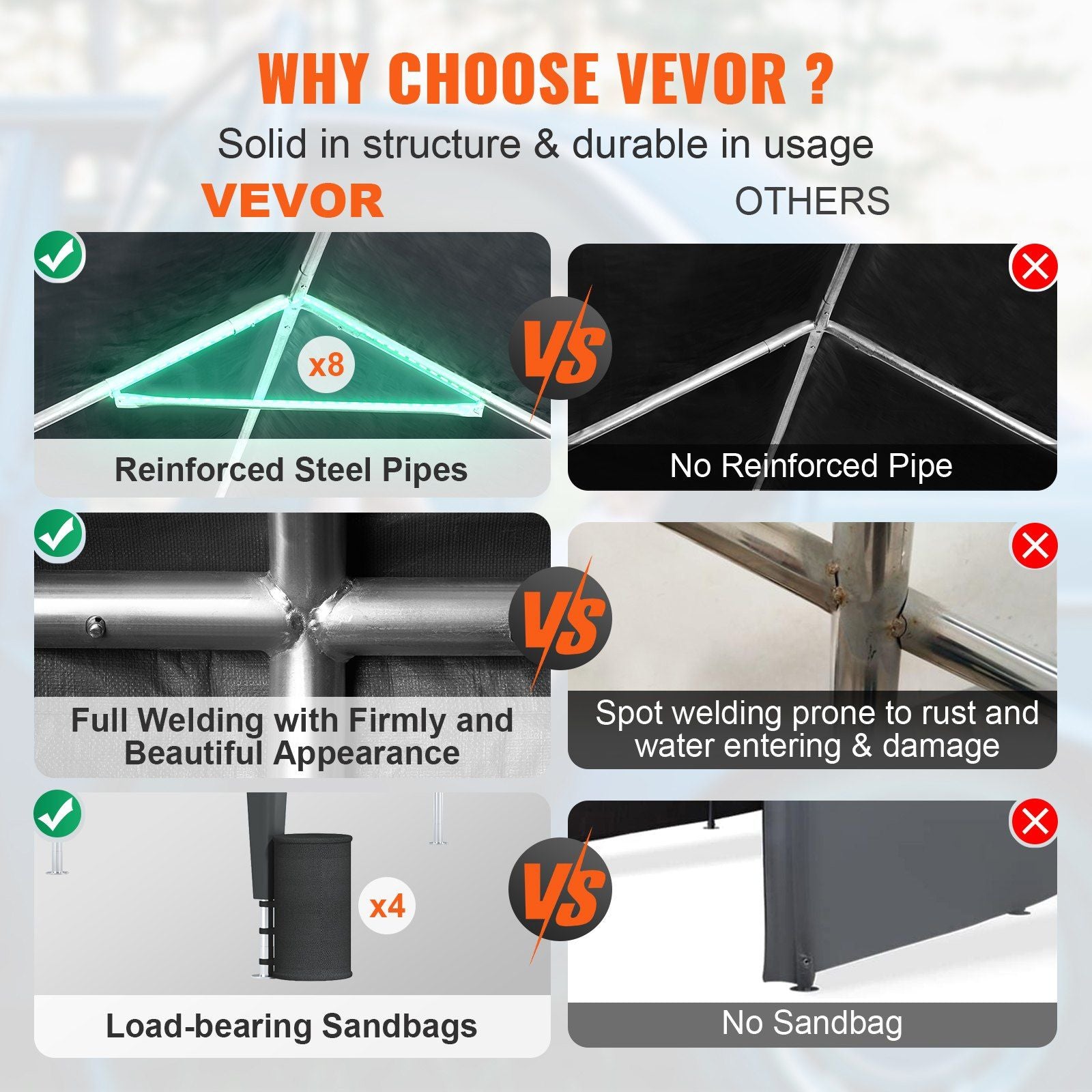 VEVOR Carport, Heavy Duty 10 x 20ft Car Canopy, Outdoor Garage Shelter with 8 Reinforced Poles and 4 Weighted Bags, UV Resistant Waterproof Instant Car Garage Tent for Party Garden Boat, Darkgray